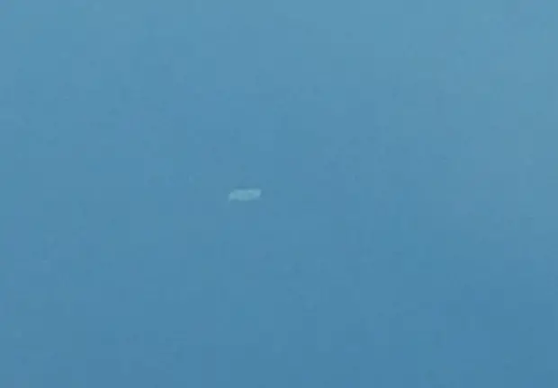 Witness report: Fuzzy, cigar shaped object traversed across the sky in broad daylight.
