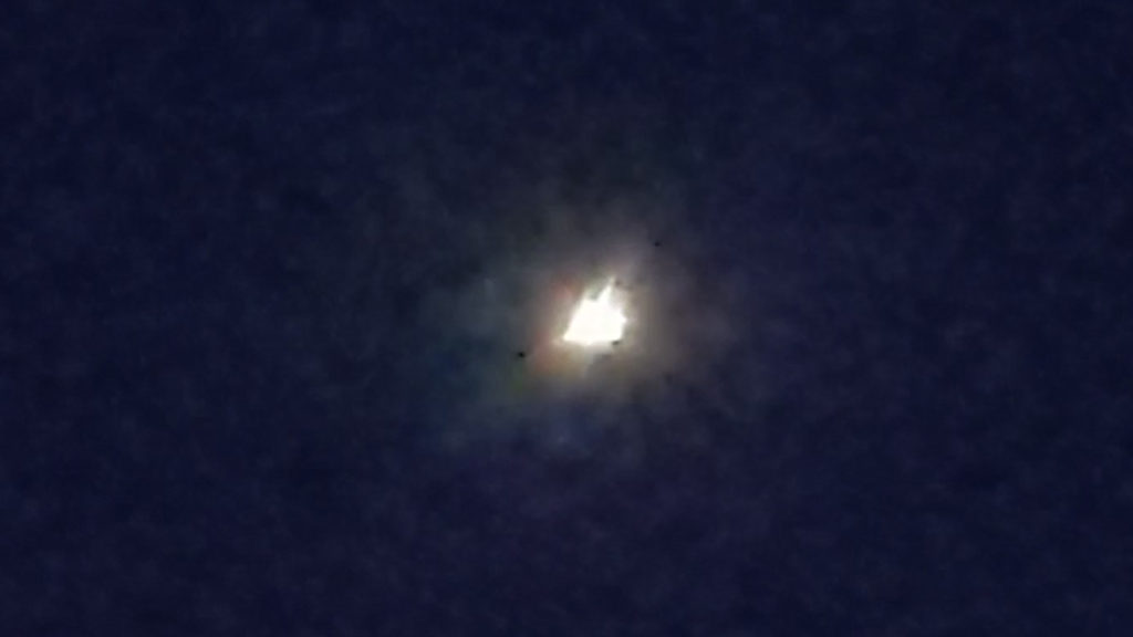 Witness report: I noticed it whenever I was getting into my car and I went back in and got my phone and I video taped it and it was approximately 3 mi away I’d say 3,000 ft high and it was just a right above a treetop from neighbor down the street I could see it very well and I videotaped it twice it’s been there twice and I’ve also seen one that was outside of spring valley California on it was November 2004 was 5 round orbs silver and I’ve seen a few others also and I am very critical of what I’m seeing so I make sure that I know what I’m saying and that’s why I videotape what I can but five orbs they weren’t there for long I was getting gas looked up saw them and I went to grab my camera which I keep in my car and by the time I turn back around I was trying to send her in and try to get a video or a photo and they just zip straight up and disappeared faster than anything I’ve ever seen