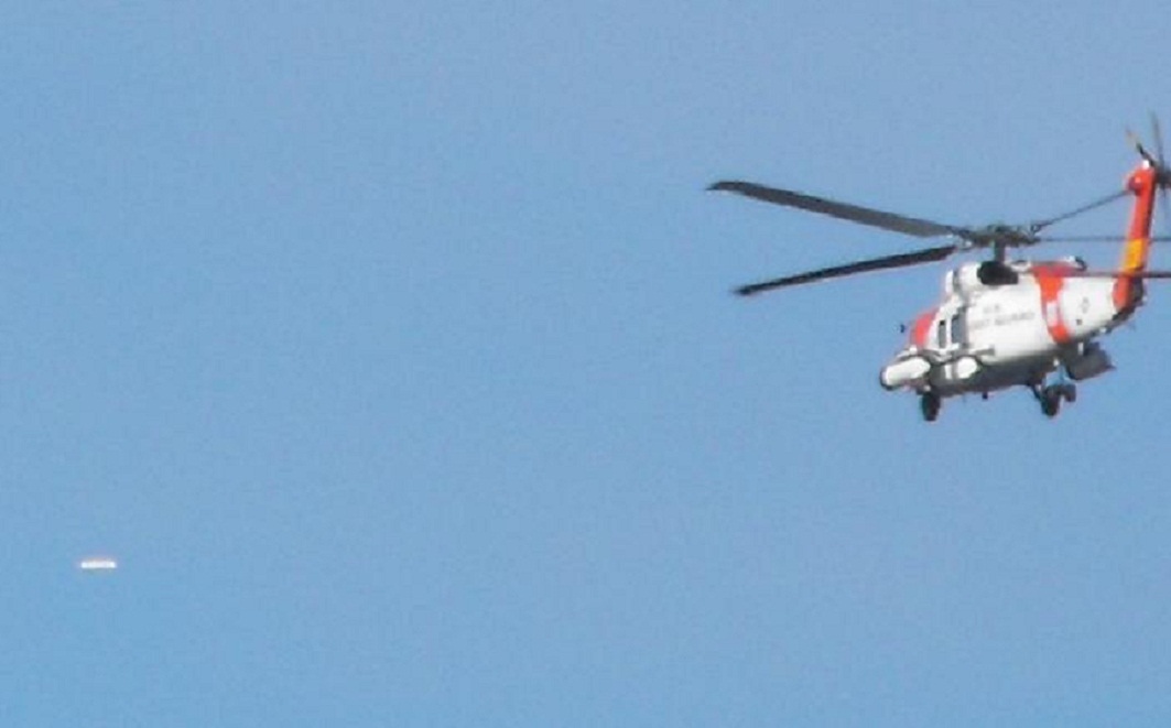Shot photo of UFO in distance while taking photos of Coast Guard helicopter.