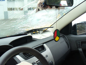 When the car hit the pavement 180 feet away, the windshield cracked and the air bags deployed.