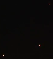 • an excellent, nice long unshaky video! alot of people seem to be getting these lights on film lately. they are always red orbs, and fly in points that are triangular. it's so weird!