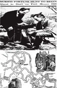 Concerns of the ground caving-in never stopped Shufelt to drill a 350 feet hole in the ground of Ft. Moore Hill where he believe a treasure room can be found. Shufelt mysteriously vanished and was never seen again in the face of the planet leaving any trace but his famous map of the underground city.