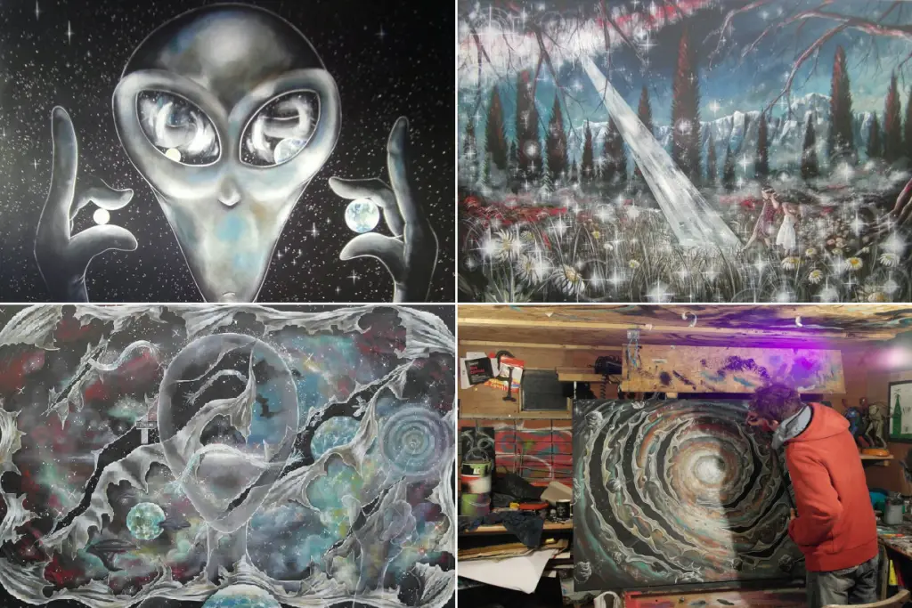 Thirty-three-year-old Lloyd Canning believes extraterrestrials first captured him in 2005 after seeing a giant spaceship floating over his car. He says that he felt that he was obliged to paint particular images that he believes are ETs’ method of communicating with mankind.