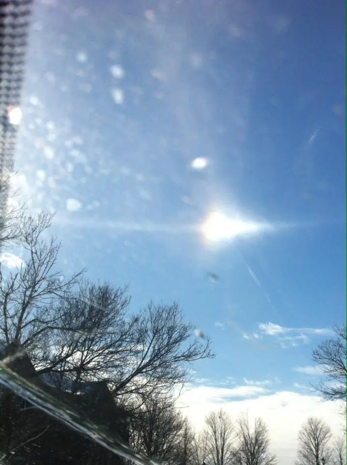A bright light to the right side of the sun. Clear day at 3:00 pm