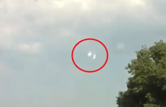 The witness shot the video while the car was moving, so it’s difficult to know if the object was also moving, other than slowly descending. The footage and the photo show the UFO was behind scattered low clouds, which could mean it was at a considerable distance. As it fell behind buildings and trees, the witness lost sight of it.
