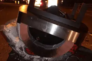 It;s obviously a street vendors pizza oven that must have been stolen. I guess it then caught fire on the back of the truck so the thieves dumped it in the street.