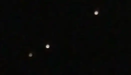Witness report: Two bright lights hovered above some trees when a third one appeared out of nowhere