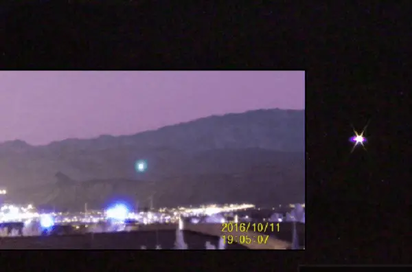 I was able to get both the camcorder and night vision cameras on this object. I wasn’t sure if it was on a distant mountain or if it was in the air until it began to move towards the city. It traveled in a level horizontal path which tells me it was in the air. It would be impossible for it to be on the ground because the hills back there are so uneven and there are no perfectly straight roads in that area.Author (Steven Barone @ youtube)