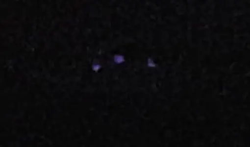 Witness report: 3 lights flying randomly side to side, up and down, forming triangles, seemed random flight paths. I work as a cleaner, I went outside at 22.50 to dispose of rubbish bags into a bin and noticed 3 green lights at around a 30 degree angle north-west of my position. Distance and height were too difficult to estimate from my position but after checking on google maps there are mostly only fields in that direction. The postcode I observed from was PO13 0HR. The lights were evenly spaced in a large triangle formation with one more forward than the others when I first noticed them. They then all turned purple and started to move. You can observe in the video how them moved. I had full zoom using a phone camera so quality isn’t great but they were all bright purple in colour and didn’t change again. They seemed to move in a random manor, moving side to side and up and down very quickly and turning very sharply. They would pass each other to swap sides, sometimes coming back to form triangles for a few seconds before moving again. Several times it looked as though one moved into another and became one light before breaking apart again. They disappeared below the houses several times so that I couldn’t see from my position what they were doing until the final time when I waited several minutes before giving up that they wouldn’t appear again so whatever it was possibly landed because they didn’t appear above the houses again. I went back inside the building onto the second level to view from a higher angle and could see one light again just above the house but it quickly disappeared downwards and that was the last I saw of them. They never went higher than the initial height I observed them at.