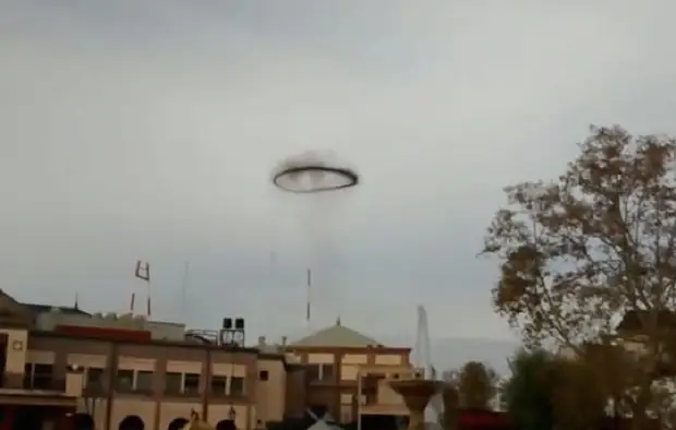 It’s blatantly obviously a smoke ring from a smoke stack!
