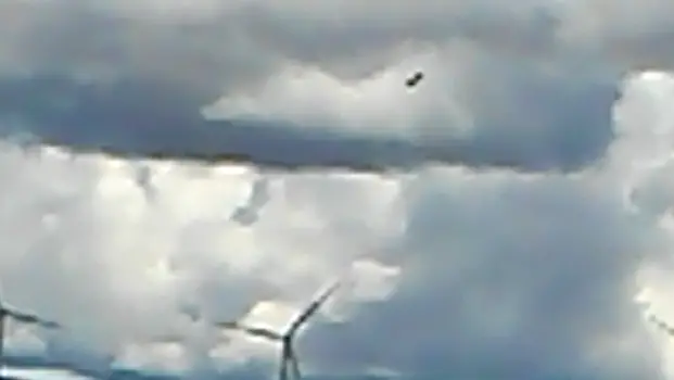 Upon review of the video I realized that there was some sort of craft zipping around those wind turbines I was admiring, it appeared quickly out of nowhere, and hovered in sort of a circular motion a considerable distance away, Looked like two discs flying tightly in tandem, with a light radiating around them at times.
