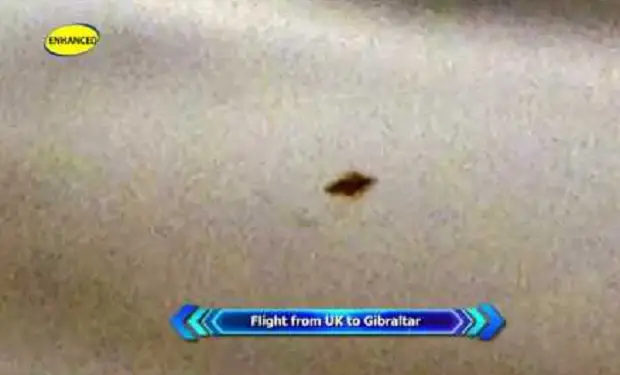 Our next story takes us on a flight from Great Britain to Gibraltar. The event took place back on April 4th of this year. The witness to this event, who also submitted the media, says he was taking cloud photos through the aircraft window when he captured a flying black disk in two of the four photos he shot. In the video, you can clearly see the shape of a disk as was described by the shooter. The object looks like it moved from one photo to the next, but that could be movement of the aircraft as well. The witness says he looked through the window again after taking the photos and there was nothing there. The object had disappeared. The only evidence he had are the two photos.