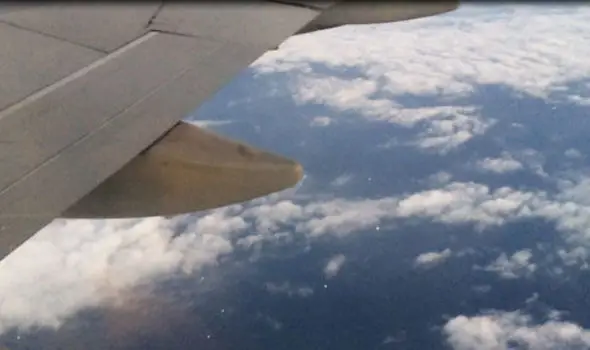 Sceptics believe those are just reflections of small lakes as the plane appears to travel over mountains. Some even say that they are only ships in the sea as they are not moving and not above the clouds. Others suggest they are oil rigs as the plane is leaving them behind, which means they are either slower or stationary.