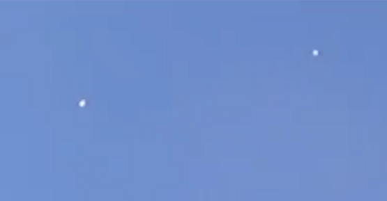 Witness report: I can only describe those objects as these reflective and glowing. Flying in one path never changing direction. The sun that day was pretty bright, bright enough to make my eyes water, which made it difficult to record them.