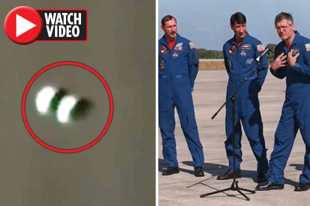 The video shows what seems to be a UFO encounter on board a space shuttle mission, which claimed to have taken place in the same year. It reveals the moment when NASA’s mission control received a radio message from a concerned space explorer reporting the sighting.