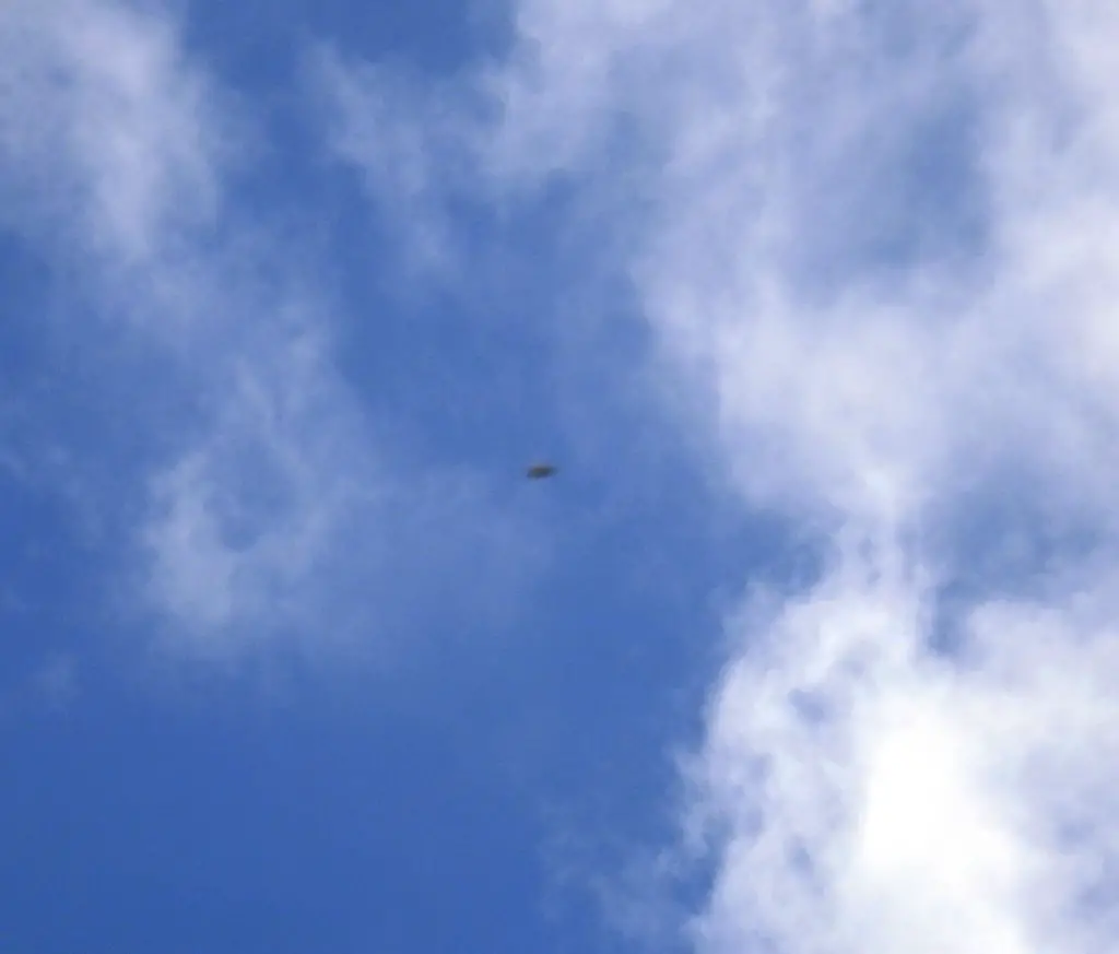 I was sky watching from my open bedroom window where I have a really good vantage point of the sky above the town centre. I was looking around an area of the sky that had a lot of scattered clouds and I was really hoping to see an anomalous object. After a couple of minutes of looking around the edge of each cloud I spotted an object that emerged from one of the clouds. Although it was quite far off in the distance I was able to zoom in while looking through the viewfinder of my Nikon P900 camera where I could clearly see that it was in fact a saucer shaped craft. I quickly took some photographs managing to capture the fast moving saucer in two photographs before it flew directly into a large batch of clouds that were situated across from the cloud that it had originally emerged from. The saucer was now hidden away from sight and I patiently waited for it to re-emerge from the other side of the clouds but unfortunately it never did. This batch of large clouds was the perfect hiding place for this flying saucer and it was able to stay hidden away from prying eyes completely undetected as the clouds slowly drifted over the area high above the unsuspecting public down below. The first photograph shows the saucer heading towards the large batch of clouds. While the second photograph shows the saucer entering into the cloud before I lost sight of it. The photographs were taken on the 30th of April at Newton Abbot Devon England. I often see flying saucers and many other different types of anomalous craft flying around in the sky above this area and I really find it fascinating living in a town with so much activity especially for someone like me who is totally dedicated to the study of ufology. I find it very interesting that an alien intelligence is observing this area by keeping a constant presence high above this town. I wonder why. What could be so special about this area. All the best John.