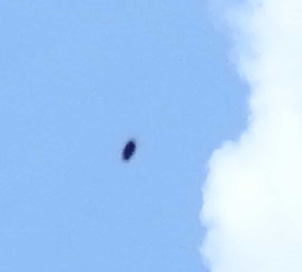 The weather wasn’t all that great but I was still sat outside in the back garden sky watching. I was looking around the sky through the viewfinder of my Nikon P900 camera and I hadn’t seen a thing. I had been outside for hours and I was starting to lose hope of seeing anything unusual in the sky, when I decided to look south where I unexpectedly saw a black saucer shaped object that flew up out of some thick clouds. It was moving very fast but I still managed to take some photographs of it before it flew up into the atmosphere and disappeared from view. I am always seeing strange aerial objects around this area day and night. It’s very strange and I believe it’s because the alien occupants of these craft are heading towards Dartmoor where they like to collect genetic material from sheep and other unfortunate animals that they have killed and mutilated. I believe that once they have collected what they need, they fly back over Newton Abbot heading towards their base which is located some were in the English channel. The photographs were taken at 3:58 PM on the 5th of June 2020, at Newton Abbot Devon England. All the best John.