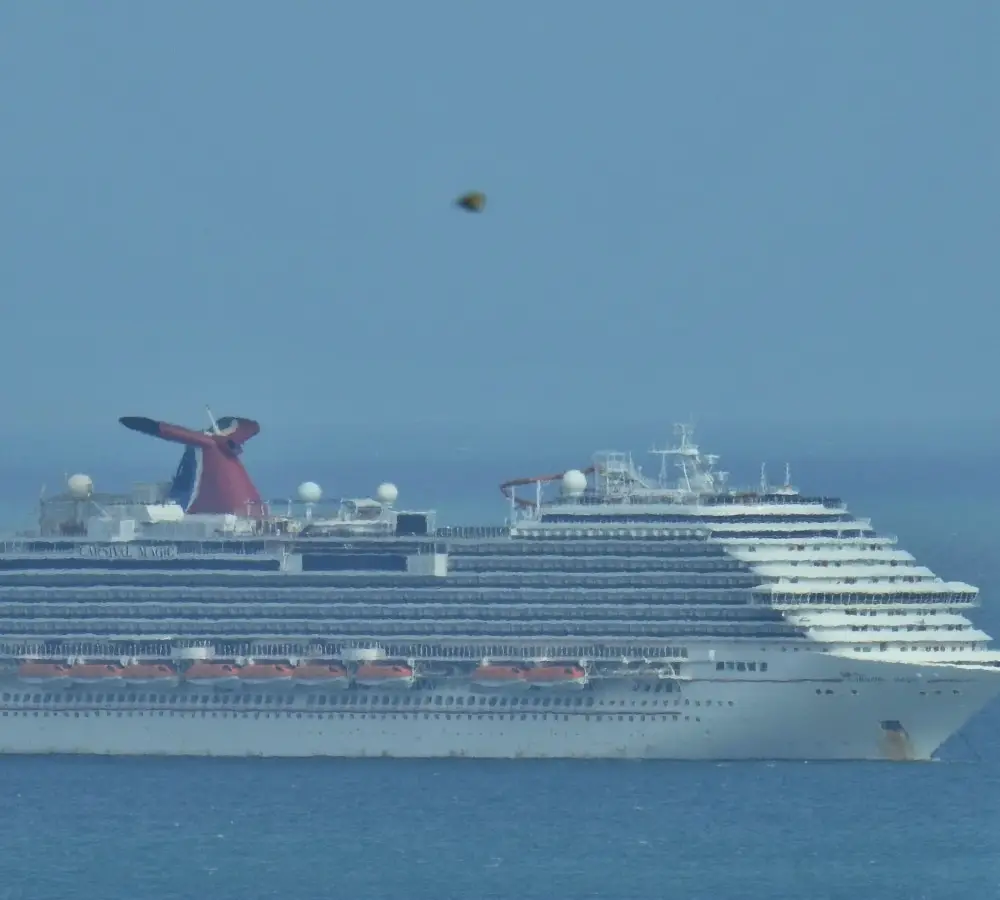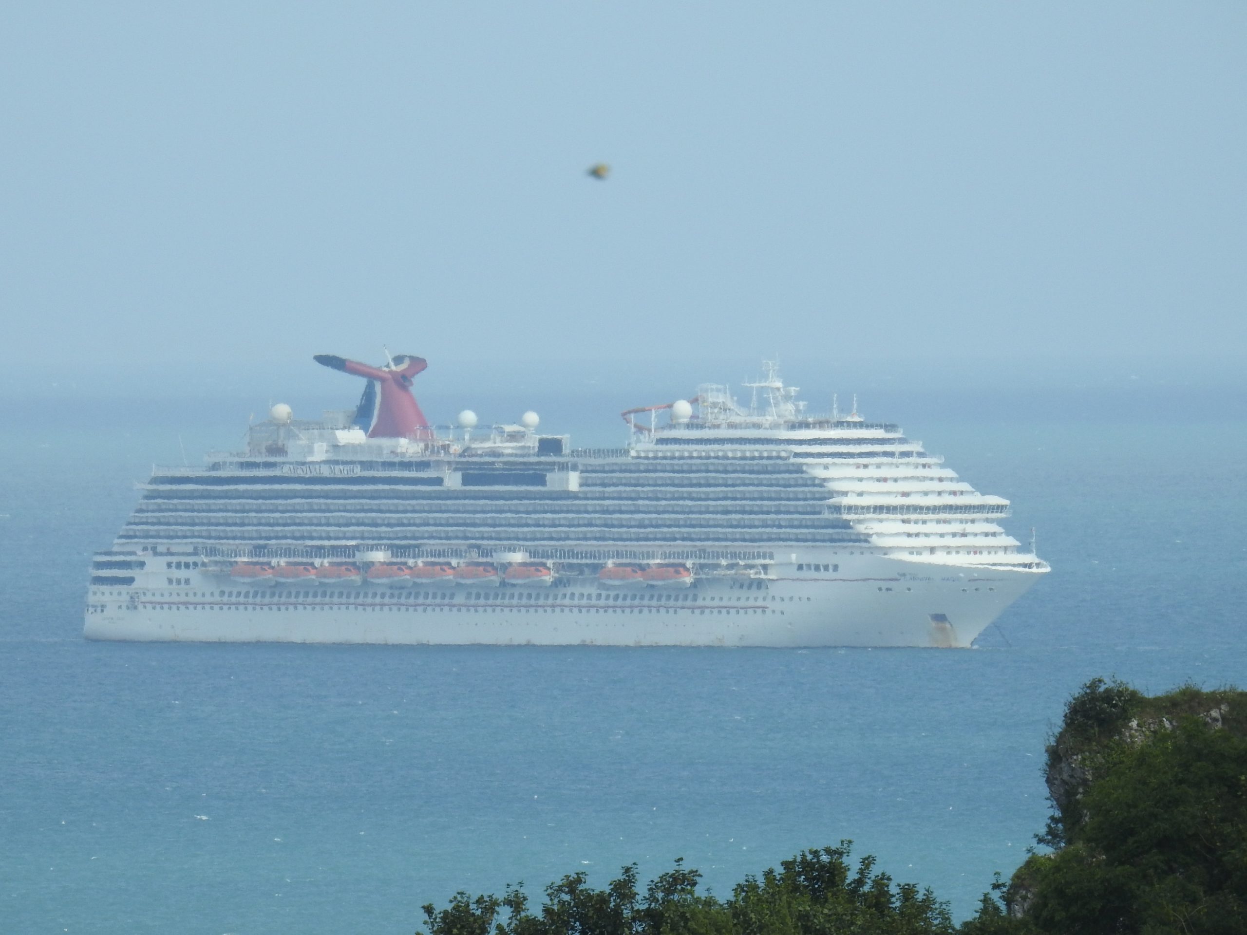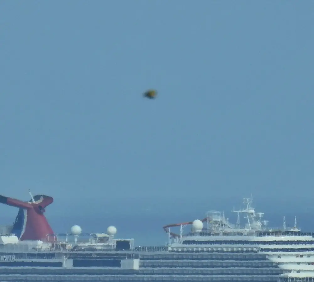 I was looking down from the cliffs at Torquay and the view was absolutely stunning I could see for miles around the area. I took a load of photographs of the coastline and the sea before I turned my attention towards the two cruise ships that were anchored just off from Hopes Nose. I zoomed in on the carnival magic cruise ship with my Nikon P900 camera and just as I was in the process of taking some photographs an unidentified object flew right over the ship before it flew directly into the sea and disappeared from view. The object did not even cause a splash as it entered the sea which I thought was rather odd. I could hardly believe what I had just witnessed. I immediately looked at the camera’s view screen and flicked through the set of photographs that I had just taken. I could see that I had indeed managed to capture the unidentified object in one of the photographs. The object was sphere shaped and appeared to have some type of force field surrounding it. I believe that this was how the object was able to enter the sea at high speed without causing a splash. Whatever this sphere shaped object was it sure was moving fast and it really was just sheer luck that I was able to capture it in a photograph. This is why I always keep my Nikon P900 camera set to burst mode with a high shutter speed. I was really chuffed that I had managed to capture an unidentified flying object right above the carnival magic cruise ship. The photograph was taken at 4:47 PM on the 7th of July 2020, at Torquay Devon England. All the best john.