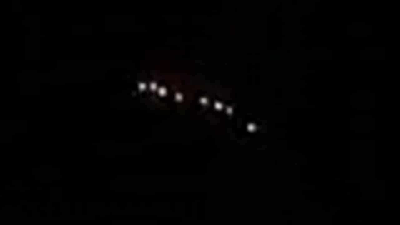 Witness report: We took a video in our condo on the 9th floor in Rosarito Mexico. 8 to 10 lights in a straight path moving sideways over the ocean. They just disappeared after 45 seconds. Shortly after we saw what looked like a coast guard ship speeding to area and searching