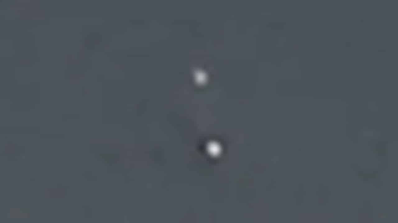 These two unidentified flying objects were filmed in the night sky above Lee’s Summit in Missouri on 2nd October 2022.