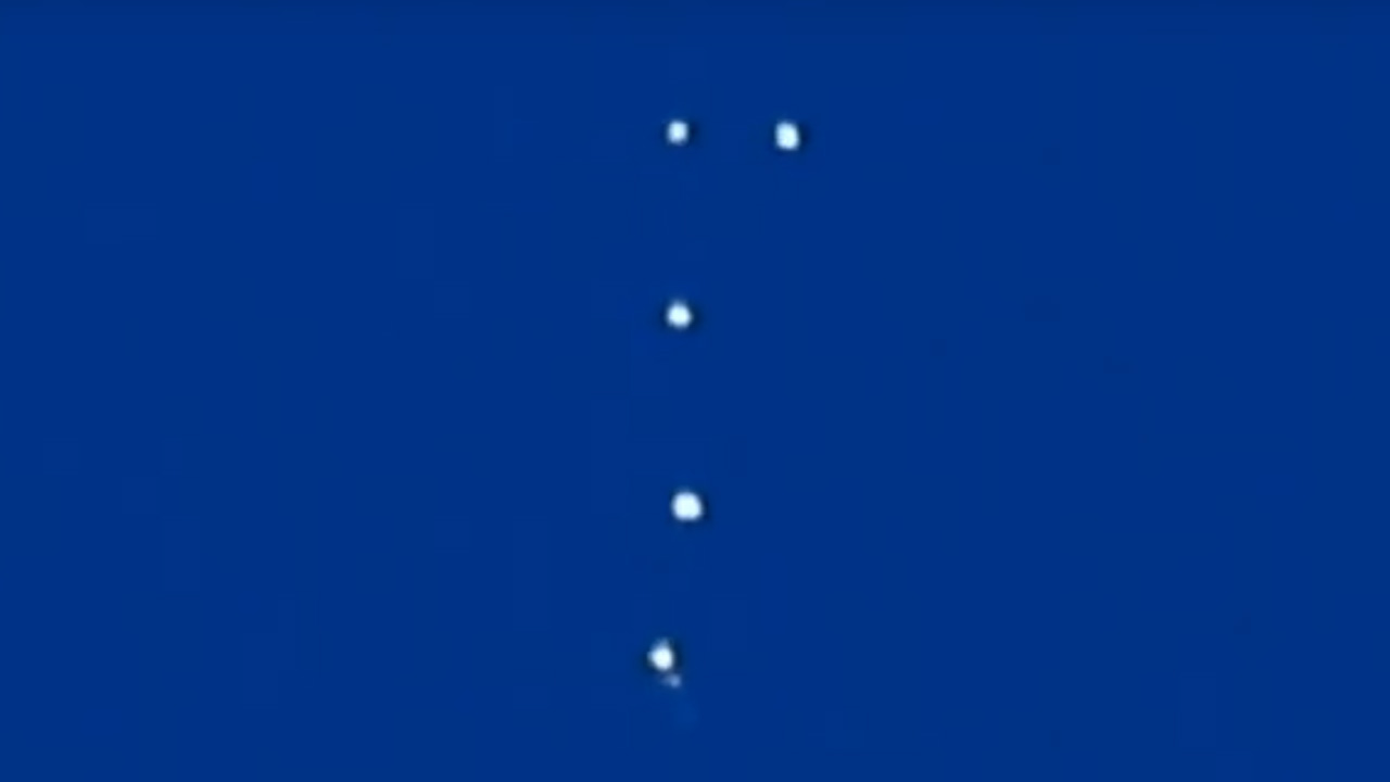 At first there’s only one UFO in the sky but then it suddenly splits into five separated UFOs.