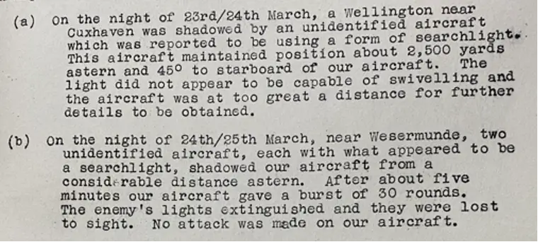 In a report released in 1940, an unidentified plane was described as carrying searchlights. However, since Germany did not try to develop these systems, the exact nature of the object was not known.