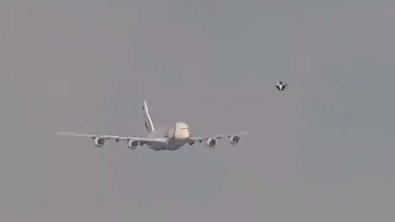 UFO approached the massive passenger aircraft as it was preparing to land, causing the video camera to shake. It is unclear what the UFO was attempting to do or whether it posed any threat to the safety of the A380 and its passengers.