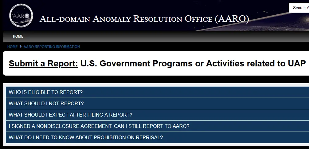 Pentagon’s UAP Reporting Website: Late last October, amidst swirling speculations and decades of reported sightings, the Pentagon unveiled its official UFO reporting platform (link: https://www.aaro.mil/AARO-Reporting-Information/). Designed for U.S. government insiders, the website seeks to gather reliable information regarding UAP encounters and any covert programs related to them.