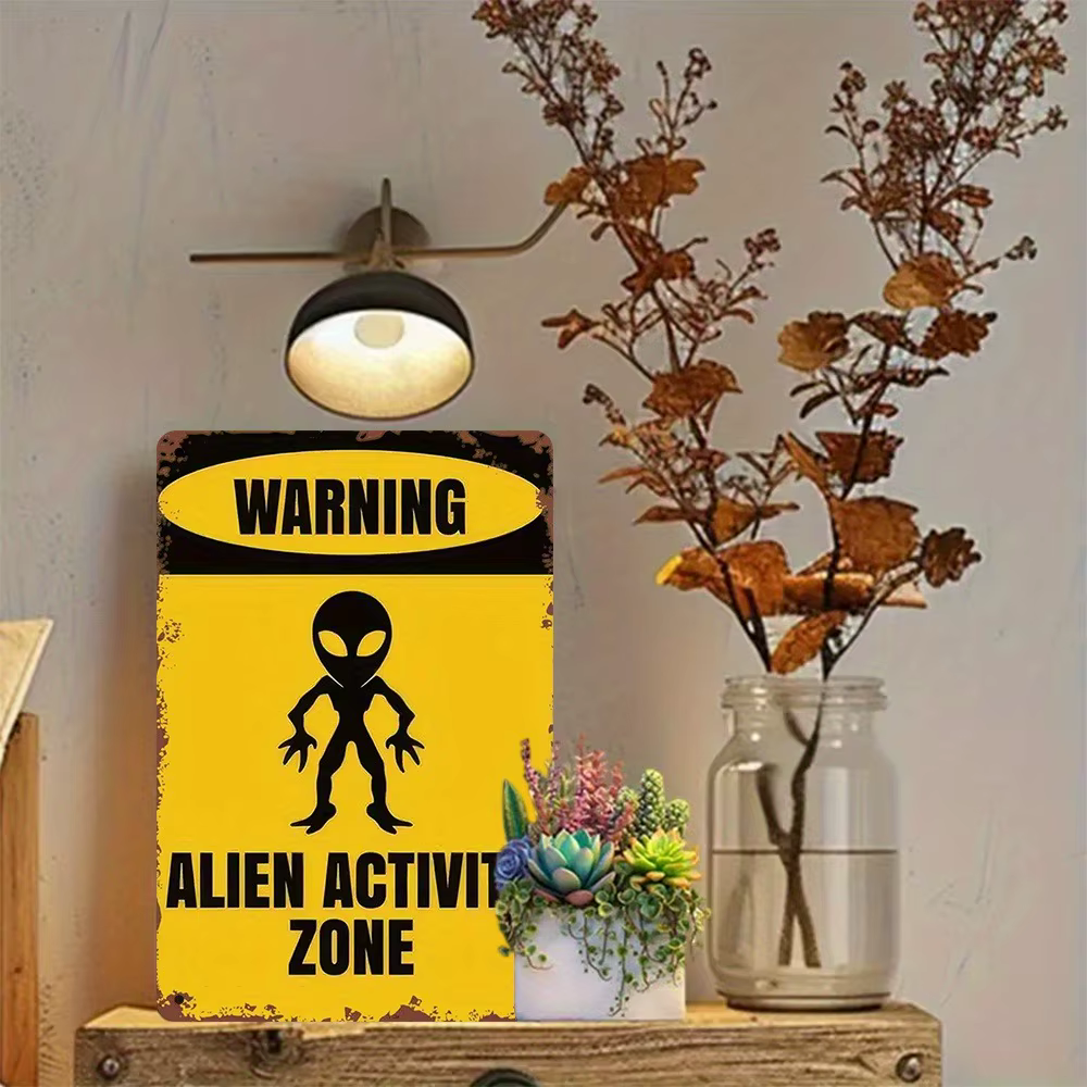 Add a mysterious extraterrestrial vibe to your space with this retro-style “Alien Activity Zone” metal tin sign. Durable, waterproof, and perfect for home, bar, garage, or UFO-themed decor.