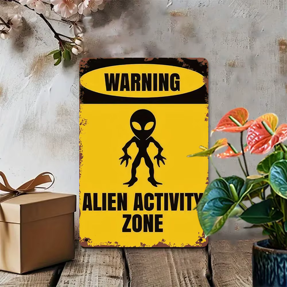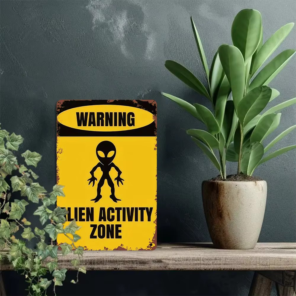 Retro Metal Tin Sign “Alien Activity Zone” – UFO Themed Wall Decor (7.87 x 11.81 in)